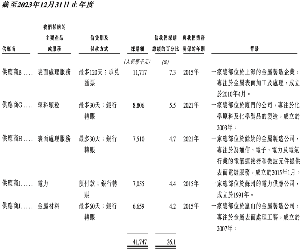 同期,来自五大供应商的采购额分别占其采购总额的约43.7%、26.1%、27.8%、25.0%。