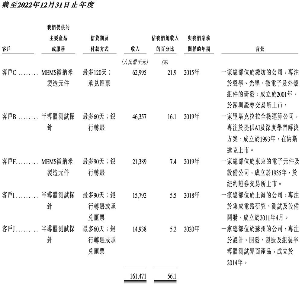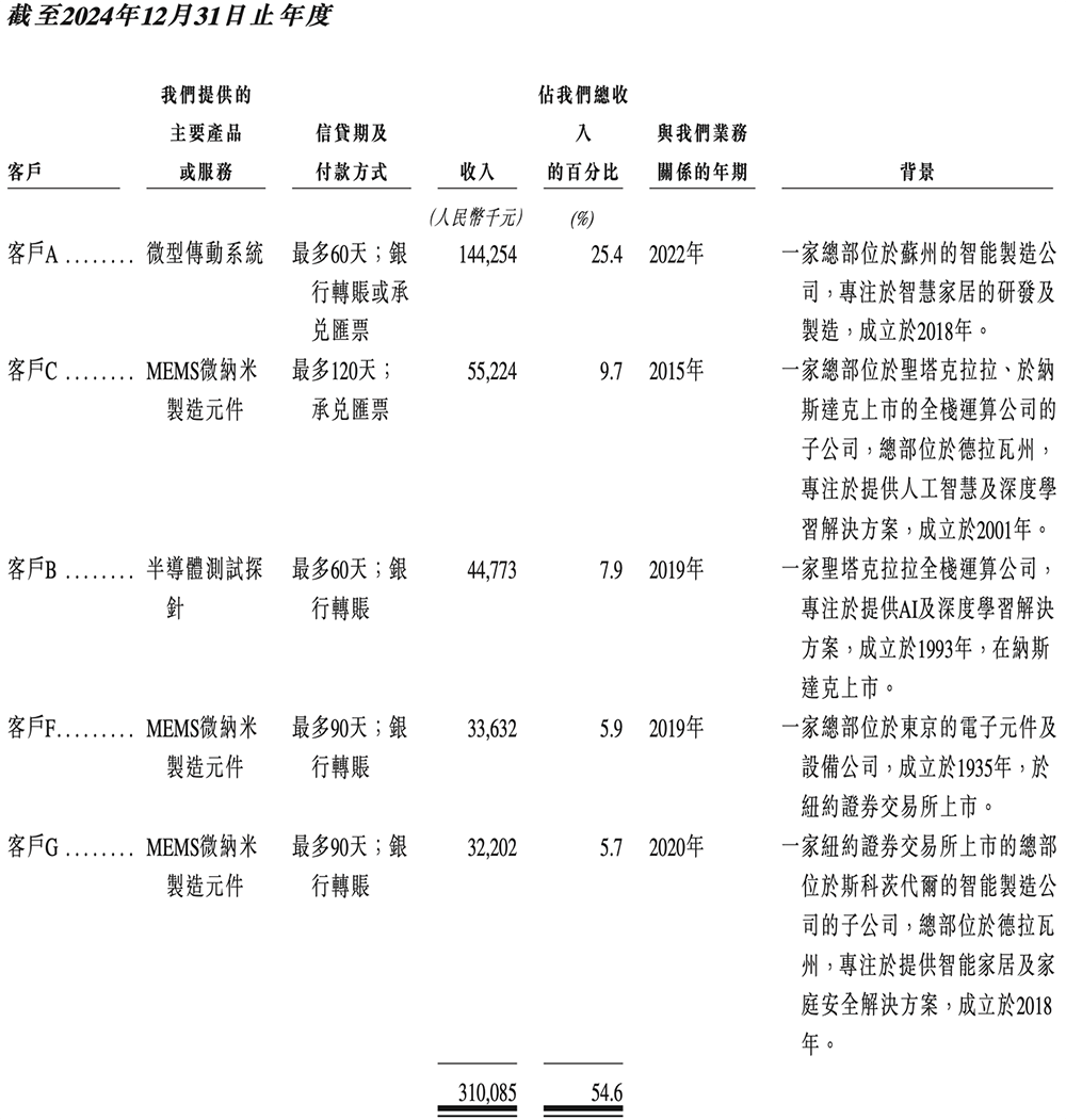 2022年、2023年、2024年、2025年1-6月,五大客户合共分别占和林微纳总收入的56.1%、46.9%、54.6%、62.8%。
