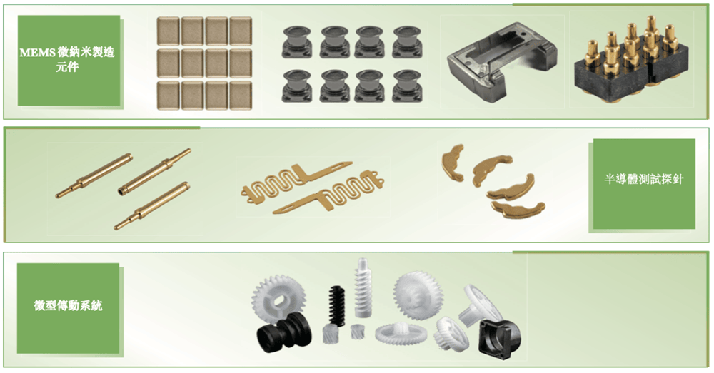 和林微纳提供三大类产品:MEMS微纳米制造元件、半导体测试探针、微型传动系统。