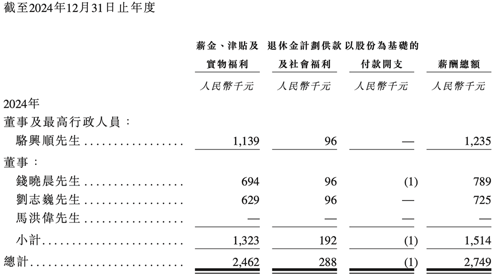 骆兴顺今年51岁,担任董事长、执行董事兼总经理,持股33.33%;钱晓晨今年49岁,担任执行董事、副总经理、研发中心负责人,持股7.39%;马洪伟今年51岁,担任非执行董事,持股5.19%。