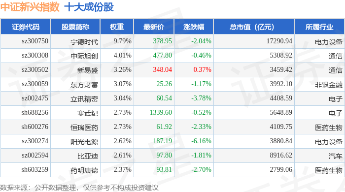 中证新兴(000964)指数十大成份股详情如下: