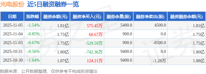 光电股份融资融券信息显示,融资方面,当日融资买入1187.97万元,融资偿还612.52万元,融资净买入575.45万元。融券方面,融券卖出4700.0股,融券偿还200.0股,融券余量5400.0股,融券余额9.35万元。融资融券余额1.81亿元。