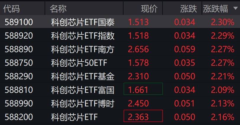 受重仓股上涨影响,科创芯片相关ETF集体涨超2%。