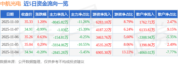 11月10日的资金流向数据方面,主力资金净流出8045.82万元,占总成交额11.26%,游资资金净流入6283.1万元,占总成交额8.79%,散户资金净流入1762.72万元,占总成交额2.47%。