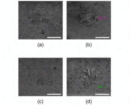 SEM图像显示,探针着陆点出现两类损伤:一是石墨烯被剥离的区域,二是因探针横向移动造成的线性划痕。尽管如此,损伤区域面积约为 20 μm×20 μm,与探针头尺寸相当,且对整体电阻影响有限。实验表明,使用四探针进行机械接触是可行且可重复的,适用于标准化测量流程。