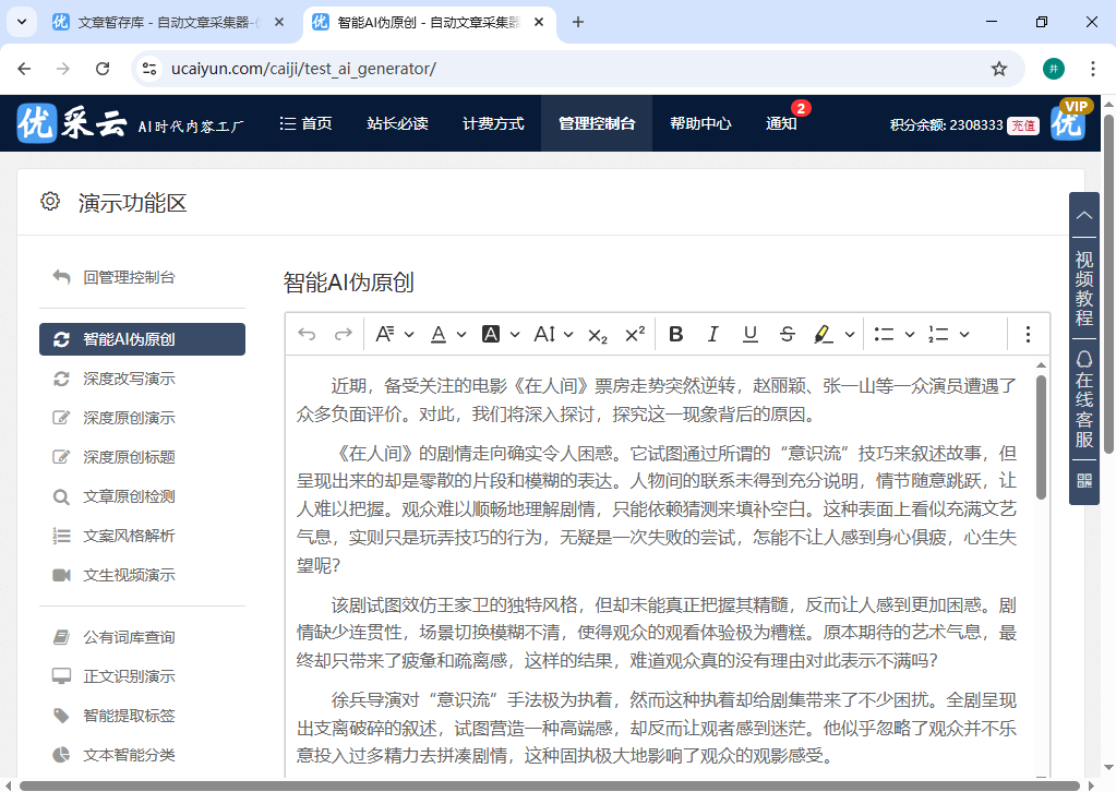 在本次评测中,优采云AI内容工厂给我留下了最为深刻的印象。