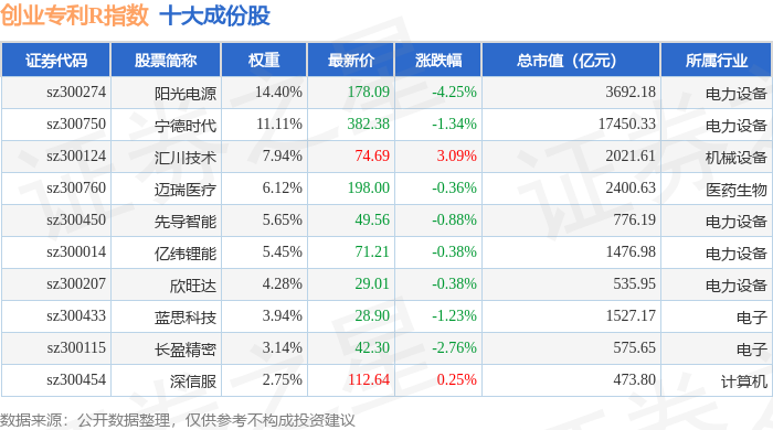 创业专利R(470068)指数十大成份股详情如下: