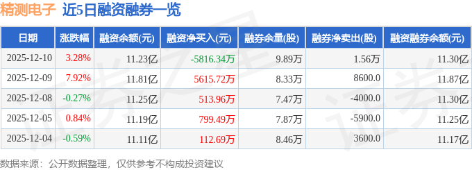 精测电子融资融券信息显示,融资方面,当日融资买入9777.61万元,融资偿还1.56亿元,融资净偿还5816.34万元。融券方面,融券卖出2.47万股,融券偿还9100.0股,融券余量9.89万股,融券余额743.33万元。融资融券余额11.3亿元。