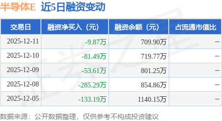 证券之星消息,12月11日,半导体E(159558)融资买入238.49万元,融资偿还248.37万元,融资净卖出9.87万元,融资余额709.9万元。