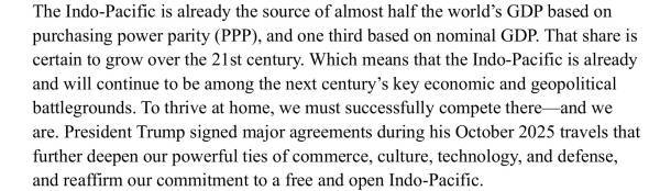 重要的是,这一经济战略必须配以持续且强有力的威慑体系,以防范印太地区爆发冲突。这种双轨策略可形成良性循环:强大的美国威慑力为更有章法的经济行动创造空间,而更规范的经济行动又将为长期维持威慑能力提供更多资源保障。”