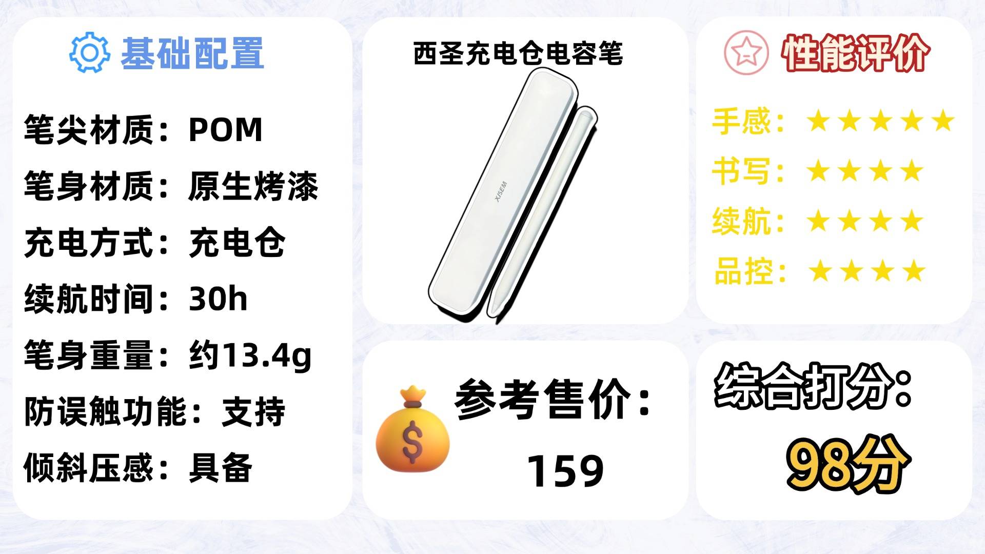 其他方面,采用了充电仓方案,在满电状态下整体续航可达约30小时,大幅缓解了频繁充电的问题。相较同价位产品,西圣在书写流畅度、功能完整性、外观做工以及续航表现上都更均衡,也难怪会成为目前市场中销量和口碑都比较突出的电容笔之一。