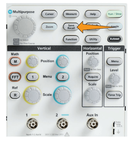 b. 选择并单击波形数据源【CH1、 CH2、Math(数学)或 FFT】。 注意: 所选波形必须在屏幕上显示,才可保存波形数据。