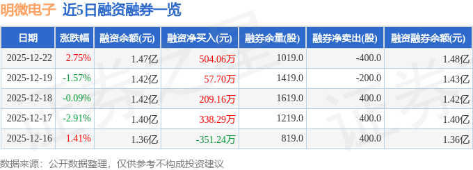 明微电子融资融券信息显示,融资方面,当日融资买入1645.38万元,融资偿还1141.31万元,融资净买入504.06万元,连续3日净买入累计770.92万元。融券方面,融券卖出200.0股,融券偿还600.0股,融券余量1019.0股,融券余额4.53万元。融资融券余额1.48亿元。