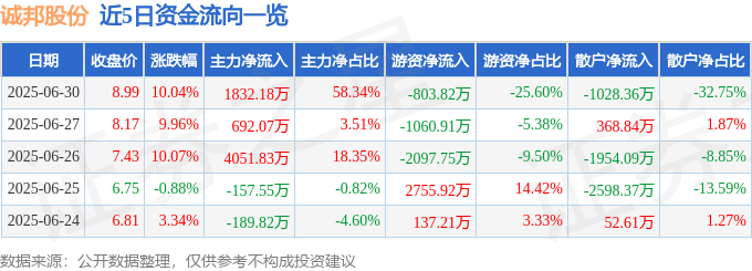 6月30日的资金流向数据方面,主力资金净流入1832.18万元,占总成交额58.34%,游资资金净流出803.82万元,占总成交额25.6%,散户资金净流出1028.36万元,占总成交额32.75%。