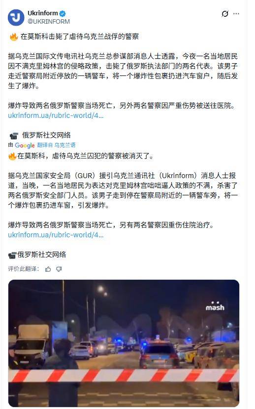 乌克兰媒体的报道截图,承认了制造了莫斯科自爆案