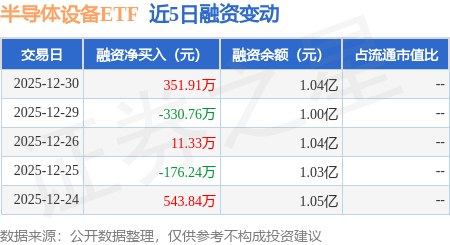证券之星消息,12月30日,半导体设备ETF(561980)融资买入1621.52万元,融资偿还1269.62万元,融资净买入351.91万元,融资余额1.04亿元,近20个交易日中有13个交易日出现融资净买入。