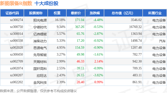 资金流向方面,新能装备R(470043)指数成份股当日主力资金净流出合计30.56亿元,游资资金净流入合计6.78亿元,散户资金净流入合计23.78亿元。成份股资金流向详情见下表: