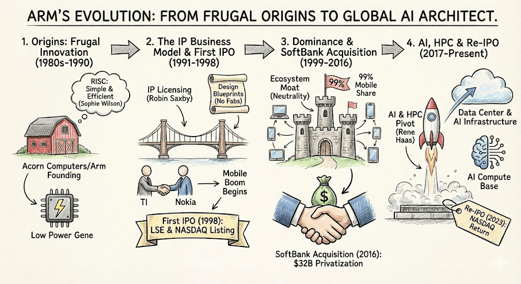 Robin Saxby 确立了 Arm 的“瑞士中立国”地位。Arm 愿意将同样的技术授权给三星、高通、联发科等相互竞争的对手。这种中立性消除了客户的疑虑,让所有厂商都敢于在 Arm 的地基上盖楼。