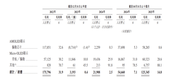 从招股书披露的产品平均售价来看,从2022年到2024年,占据公司营收大头的AMOLED显示驱动芯片的平均售价明显下滑,分别为25.7元、18.6元、15.9元,三年降幅接近40%。截至2025年10月31日,该产品定价维持在15.9元的水平。该产品2023年甚至录得-1.4%的毛损率,2024年仅为0.3%,直至2025年前10月才回升至8.6%,但相较2022年的高点32.6%仍有明显降幅。