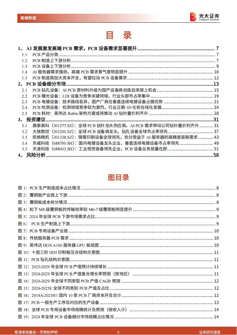 在这一轮产业景气周期中,PCB制造流程中的几个高价值量环节尤为值得关注,主要包括钻孔、曝光、检测、电镀等专用设备,以及机械钻孔的核心耗材——钻针。市场预测显示,全球PCB专用设备市场规模在未来几年将保持稳定增长,其中钻孔设备占据最大份额。值得注意的是,为满足AI硬件更精密的制造要求,技术迭代正在加速。例如,为应对未来可能采用的更高硬度覆铜板材,能够实现更高质量钻孔的超快激光钻孔技术,为国内设备厂商提供了切入高端市场的机遇。同时,用于线路图形转移的激光直接成像设备,因其高精度优势,已成为高端PCB曝光工序的主流选择。