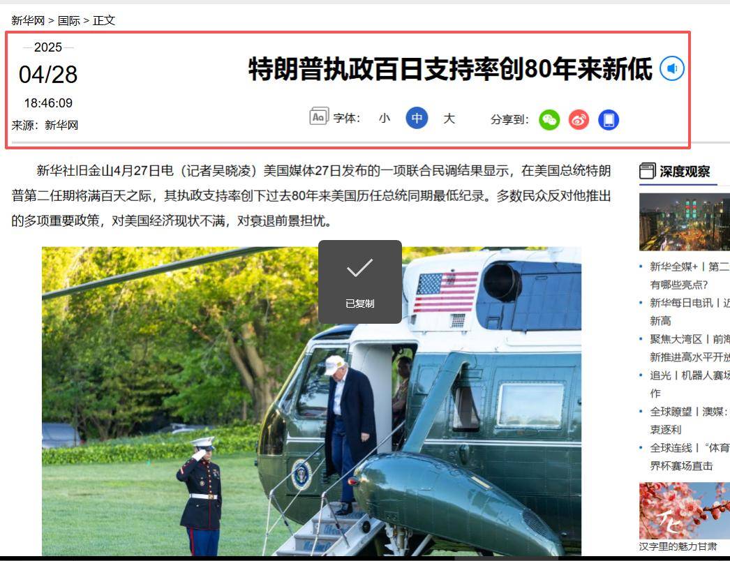然而,不论特朗普如何博弈,民调数据背后所反映的,是美国民众对未来的不同诉求。根据新华网报道,特朗普第二任期执政百日时,美国广播公司、《华盛顿邮报》和益普索集团联合民调显示,其支持率仅为39%,创下了80年来历任总统同期最低纪录。
