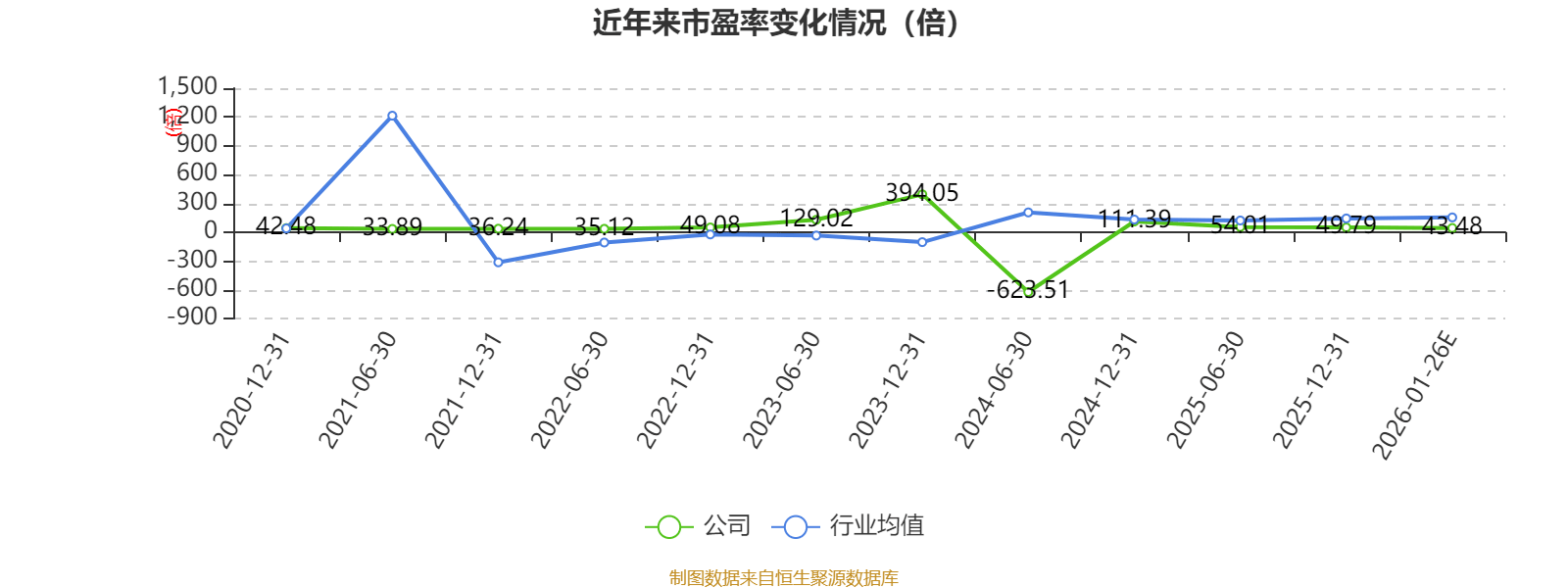 市盈率、市净率为负时,不显示当期分位数,会导致折线图中断。