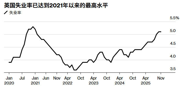 劳动力市场成为政策辩论的核心。截至11月的三个月,英国失业率维持在5.1%,创下2021年初以来的最高水平,且将高于央行此前预测的5%。不过,近期经济数据呈现积极信号,11月GDP增长0.3%,综合PMI创下21个月新高,叠加工党上台后经济出现复苏迹象,一定程度上淡化了就业压力带来的降息诉求。