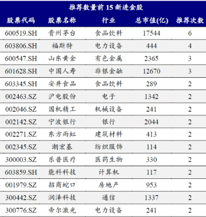 机械设备板块为国机精工、杰瑞股份、英维克、应流股份等,合计均被推荐2次;电力设备板块是福斯特,合计被推荐了4次。