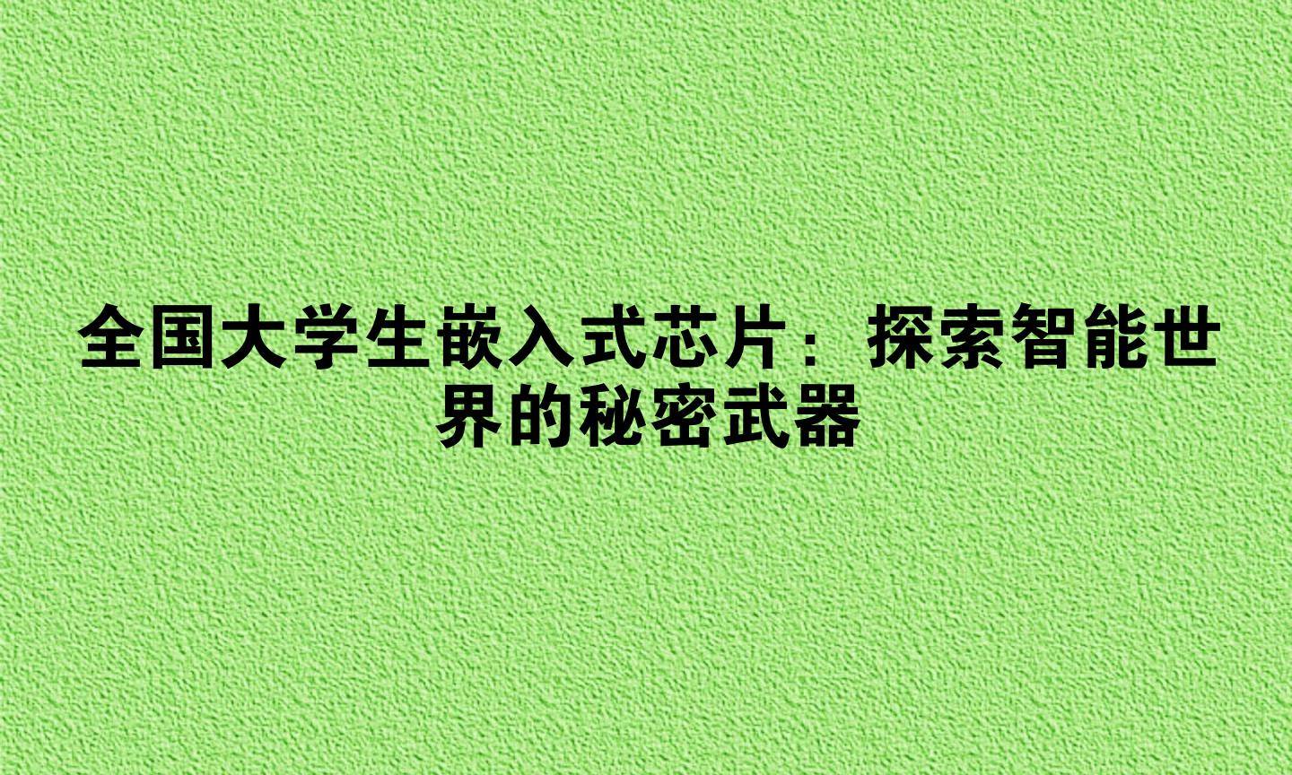嘿,大家好!今天咱们来聊聊一个超酷的话题——全国大学生嵌入式芯片。你可能听说过嵌入式芯片,但不知道它到底是个啥?简单说,它就像是我们生活中各种智能设备的“大脑”,从智能手机到智能家居,无处不在。对于大学生来说,学习嵌入式芯片可不是什么高不可攀的事儿,反而能让你在科技浪潮中脱颖而出。