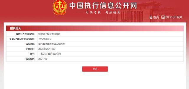 近日,中国执行信息公开网显示,积成电子股份有限公司(股票代码:002339,以下简称“积成电子”)新增一则被执行信息,山东省济南市中级人民法院依法对其执行292.177万元,执行案号为(2026)鲁01执248号。这一消息迅速将这家手握多项高级别资质的大型基建企业推向舆论风口。