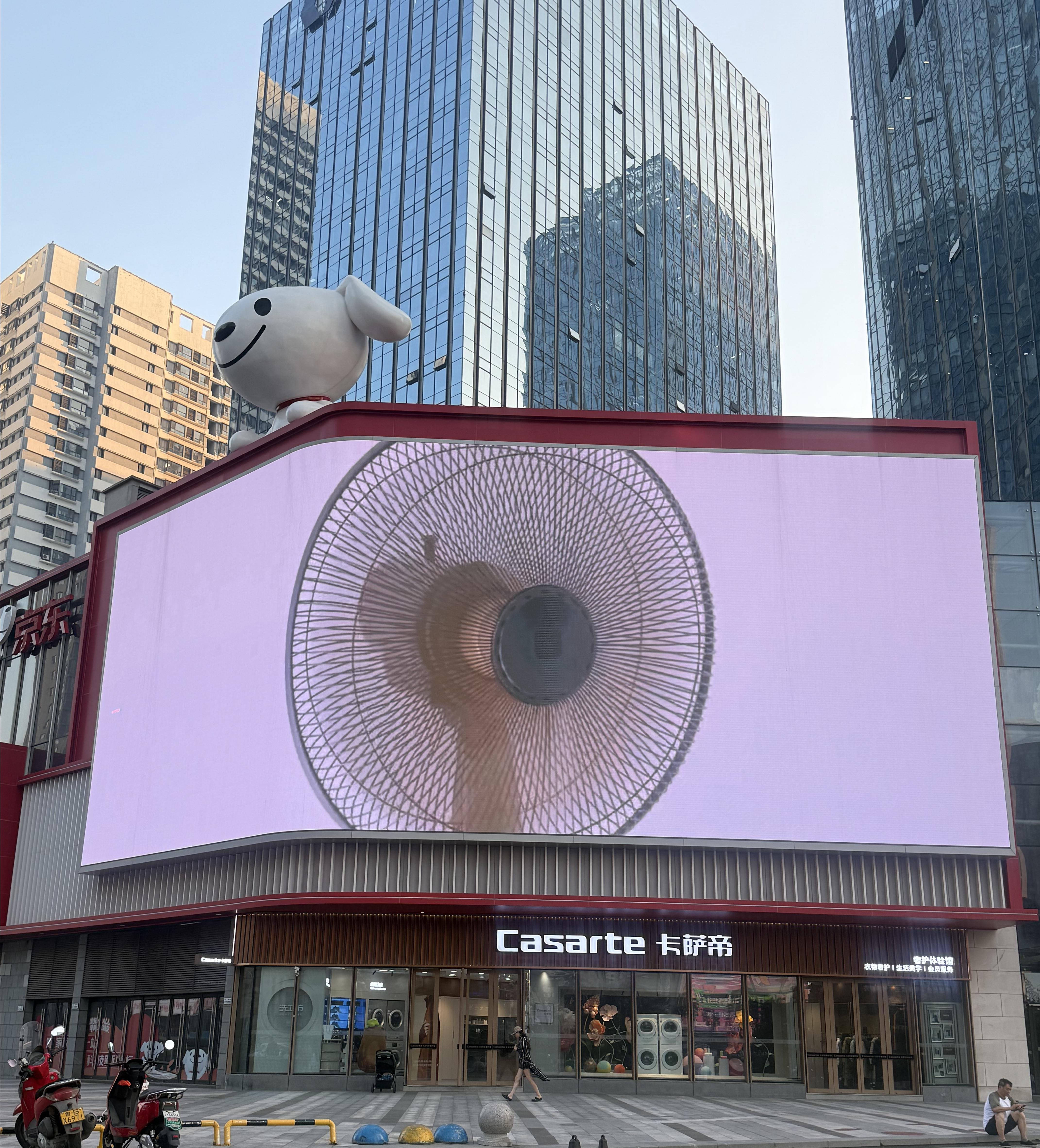7月4日,本周末将迎来本轮高温过程的鼎盛阶段,多地或将遭遇同期罕见的高温,逼近40℃。在这场盛夏高温“烤验”中,京东MALL、京东电器城市旗舰店多地户外大屏幽默“打开”了电子空调和电子风扇,为城市“降温”。绝不“望梅止渴”,京东MALL、京东电器城市旗舰店等各大门店启动公益清凉驿站服务,为高温下的工作者,包括环卫工人、交警等,提供免费饮用水,并欢迎市民到店避暑纳凉。