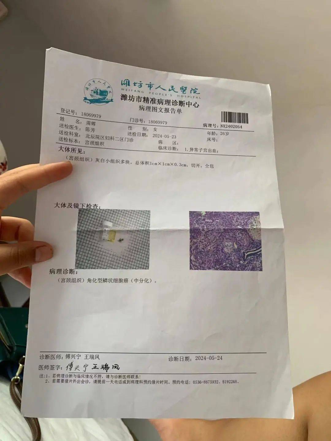 周辉宫颈癌诊断报告(来源:受方者提供)