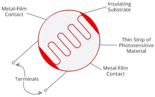 LDR是使用半导体材料制造的,以赋予其光敏特性。可以采用各种材料,其中硫化镉(CdS)是这些光敏电阻的一个普遍选择。硫化铅(PbS)和锑化铟(InSb)是所使用的其他材料的例子。