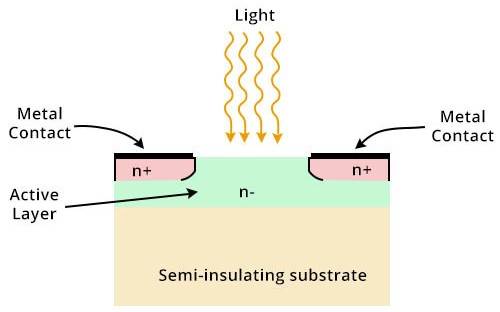 光敏电阻是一种光敏电阻,它有一个平坦的水平体,暴露在光线下。轻度掺杂的有源半导体区域被沉积在半绝缘衬底上,这种安排确保了光敏电阻的光敏感性。