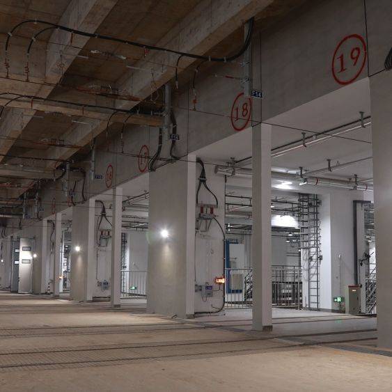 由五公司建设的Ⅷ-TS-14-1标段占地面积11.5万平方米,建筑面积22.77万平方米,施工内容主要包括:车辆段运用库、联合车库、物资库及上盖平台A区汽车库工程的土建、装饰装修、机电安装、市政及附属设施建设。