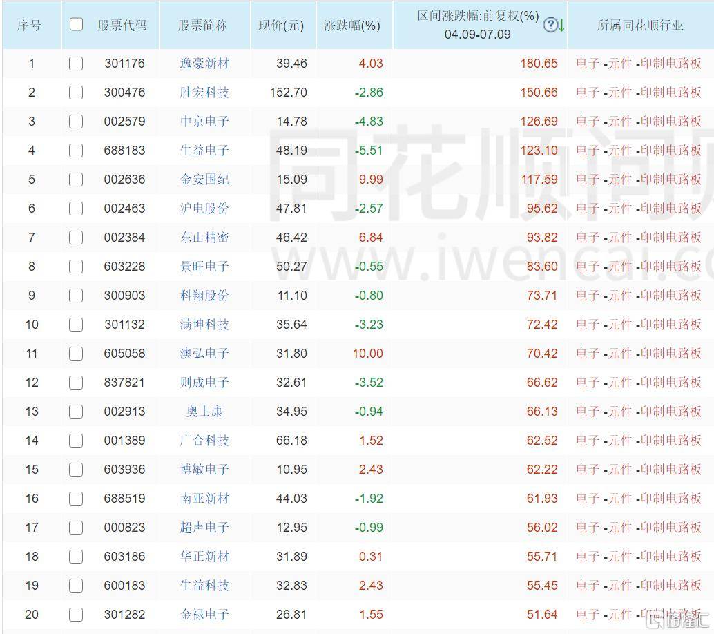 其中,逸豪新材、胜宏科技、中京电子、生益电子、金安国纪股价翻倍,沪电股份、东山精密累计涨幅超90%,景旺电子、柯翔股份、超声电子、生益科技等13只个股涨幅超50%。