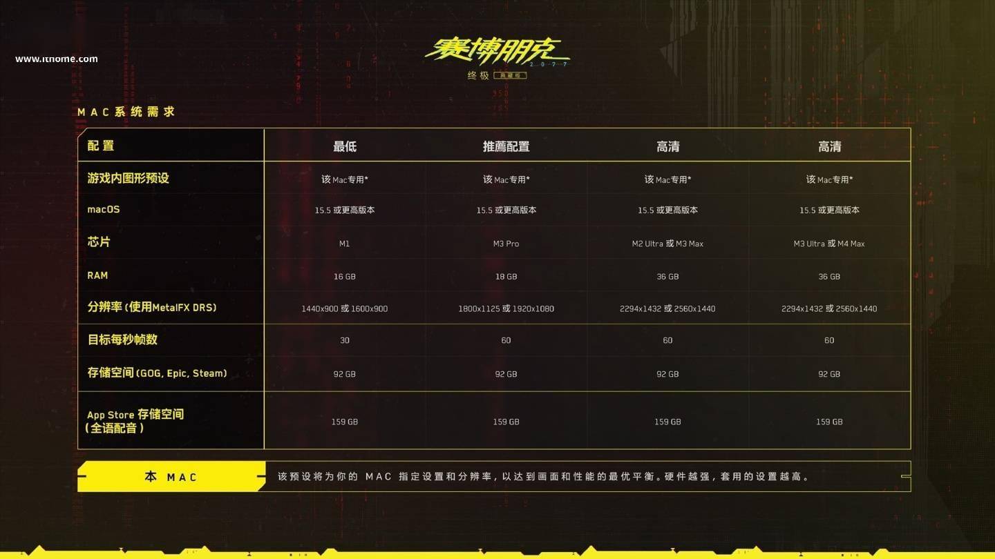 IT之家 7 月 16 日消息,CD Projekt Red 今日公布了《赛博朋克 2077:终极版》游戏苹果 Mac 版的配置要求,最低配置要求为 M1 芯片 + 16GB 内存,在该配置下可实现 1440*900 30FPS的画质。