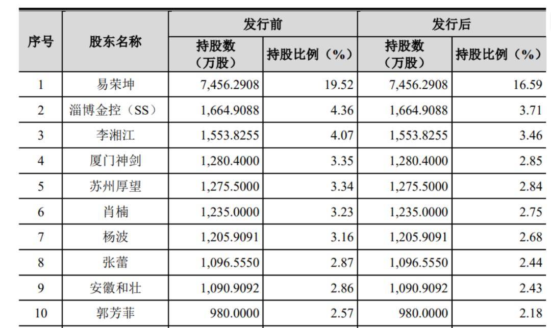 《招股书》显示,截至目前,易荣坤直接持股7456.29万股,持股比例19.52%。