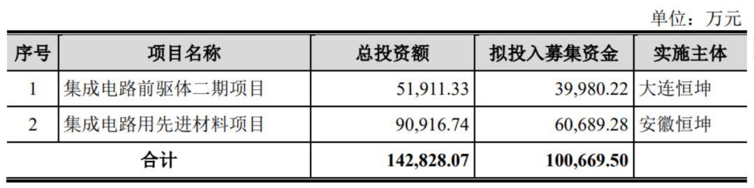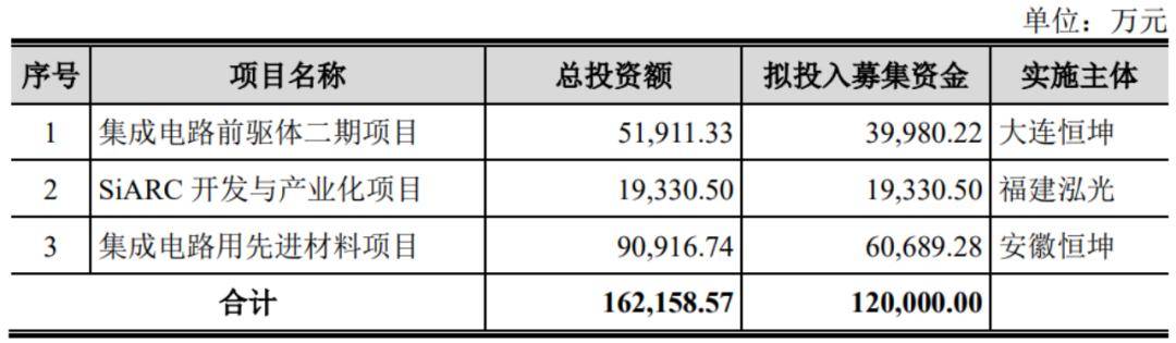 值得注意的是,恒坤新材最初的募投项目为3个,拟募资12亿元,用于集成电路前驱体二期项目、SiARC开发与产业化项目、集成电路用先进材料项目,分别负责不同自产产品的研发和生产。