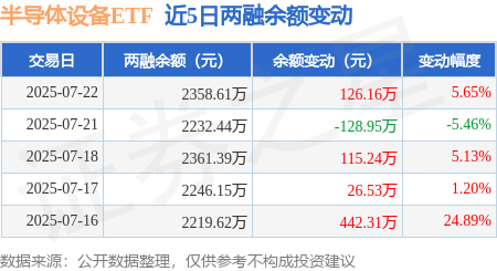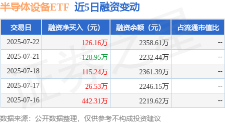 证券之星消息,7月22日,半导体设备ETF(561980)融资买入790.21万元,融资偿还664.05万元,融资净买入126.16万元,融资余额2358.61万元。