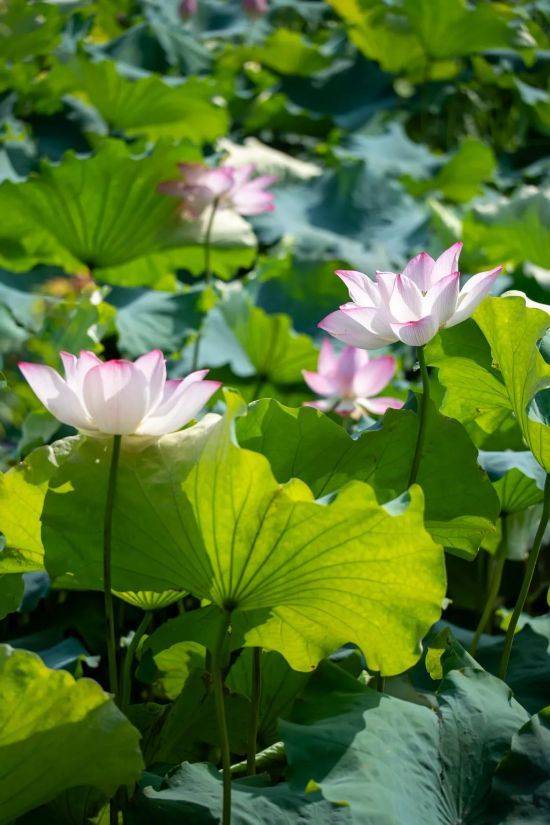从纯白、鹅黄、浅粉、玫红到墨红,十余种重瓣荷花交织出千重变化,风动时摇曳生姿,现在就去赏这场盛夏荷宴吧!
