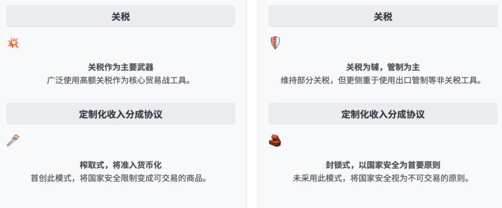 而特朗普政府的做法,则更像是单边主义的、交易驱动的。与其说是建“高墙”,不如说是设“收费站”。它不再寻求与盟友协同,而是直接向企业和国家施压。