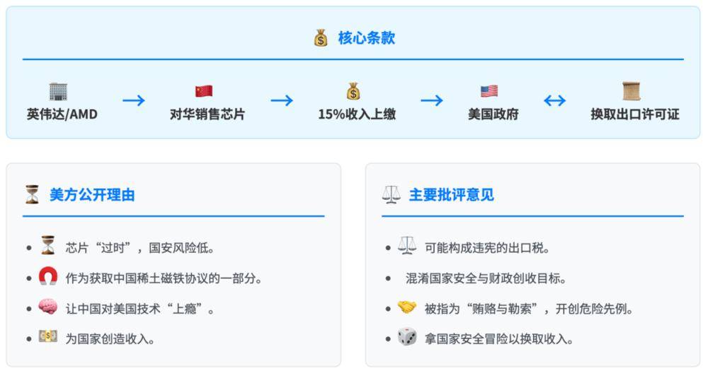 然而,出口管制体系的设计初衷是维护国家安全,而非充当财政部的提款机。批评者认为,这种功能混淆不仅可能不合法,而且极其危险,因为它将国家安全工具与财政工具画上了等号,为未来任何以“创收”为名的国家安全妥协打开了潘多拉的魔盒。