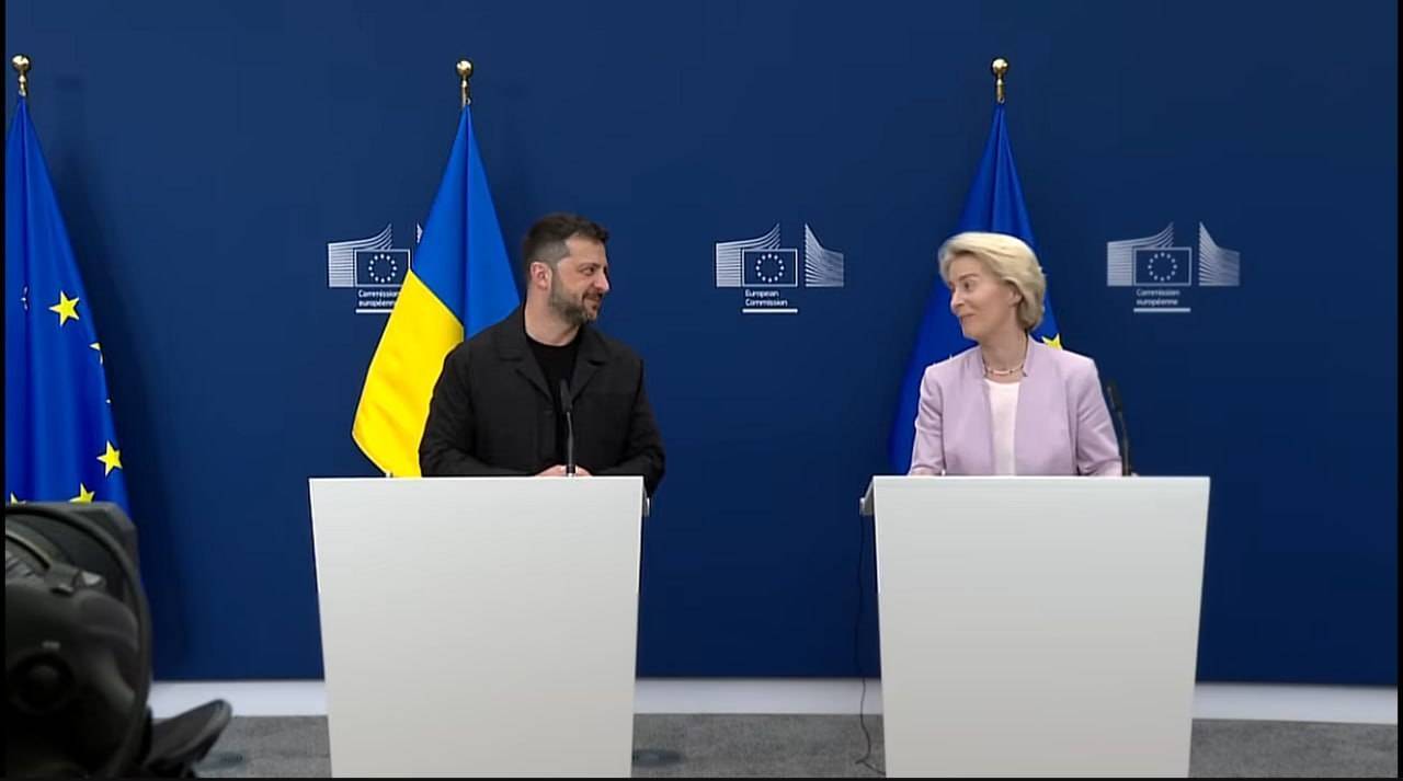 冯德莱恩在联合新闻发布会上表示,欧盟将与乌克兰继续合作,实现尊重乌克兰以及欧洲重要安全利益的公正和平。
