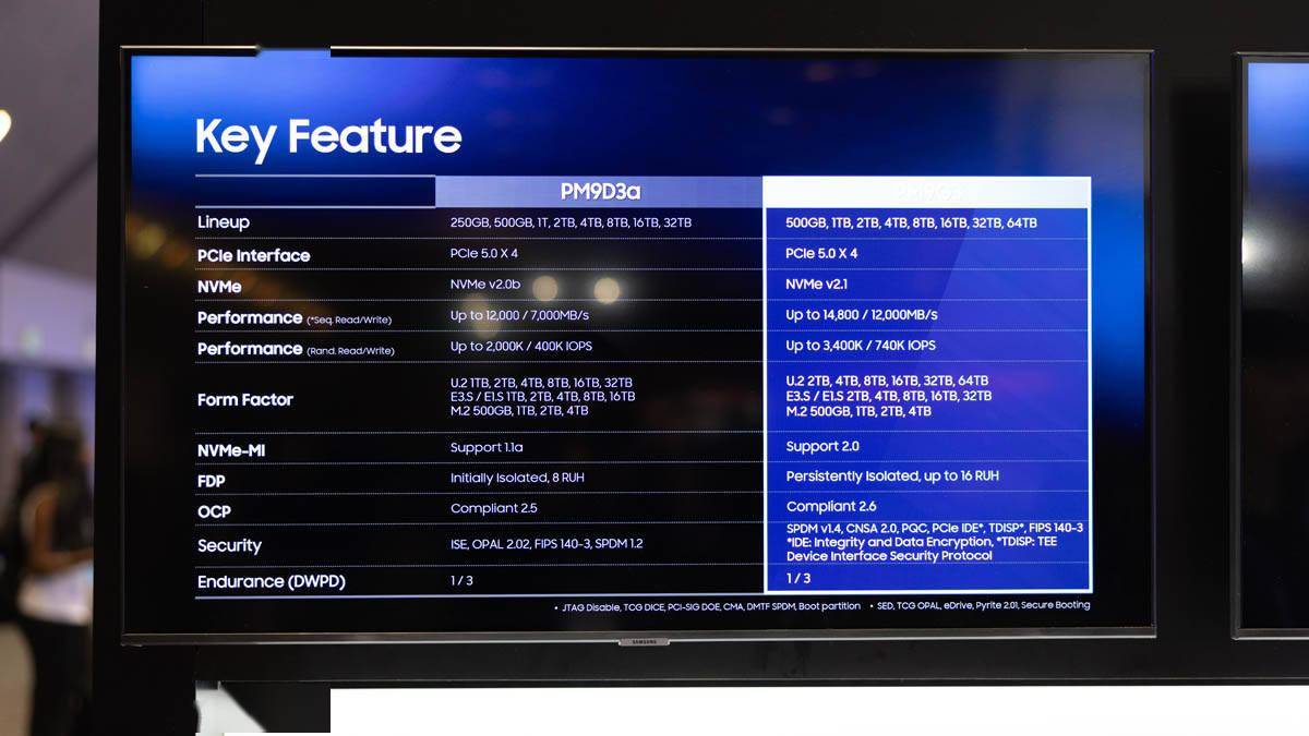 而对于高性能数据中心级固态硬盘,三星则展示了新品 PG9G3,这是一款旨在接替 PM9D3a 的 PCIe 5.0×4 接口产品。
