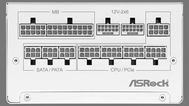 华擎 SL-1200G (W) 电源采用 150mm 长度的 ATX 外形规格设计,符合英特尔 ATX 3.1 和 PCIe 5.1 规范,提供全模组化供电线材,获得 80 PLUS 金牌和 Cybenetics 白金牌效率认证。