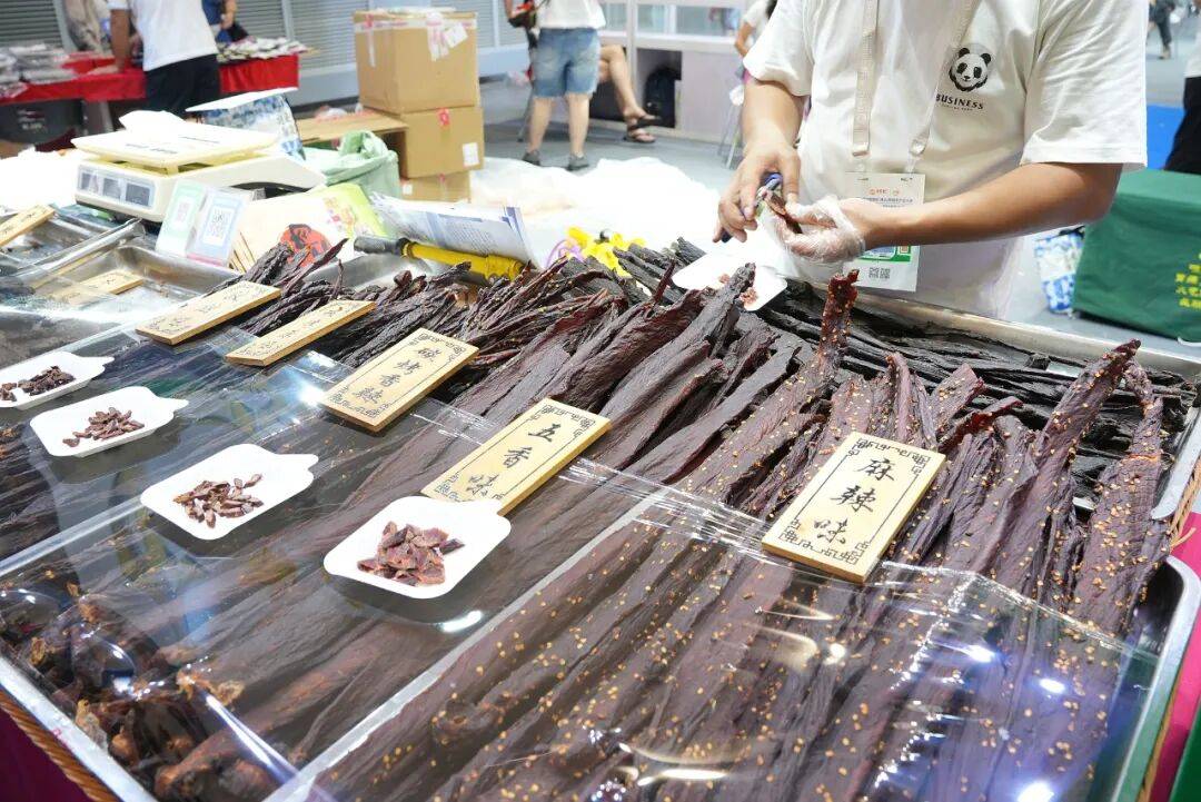 2025年7月18日,第三届中国国际(佛山)预制菜产业大会在佛山潭洲国际会展中心举办。图为展出的牛肉干。(图片来源:视觉中国)