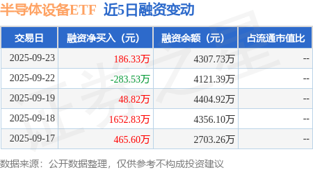 证券之星消息,9月23日,半导体设备ETF(561980)融资买入1675.73万元,融资偿还1489.4万元,融资净买入186.33万元,融资余额4307.73万元。