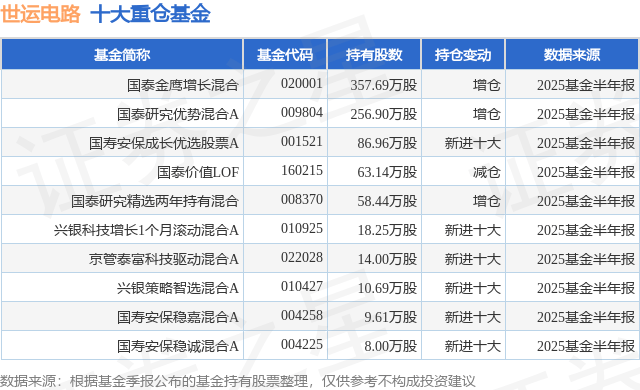 重仓世运电路的前十大公募基金请见下表: