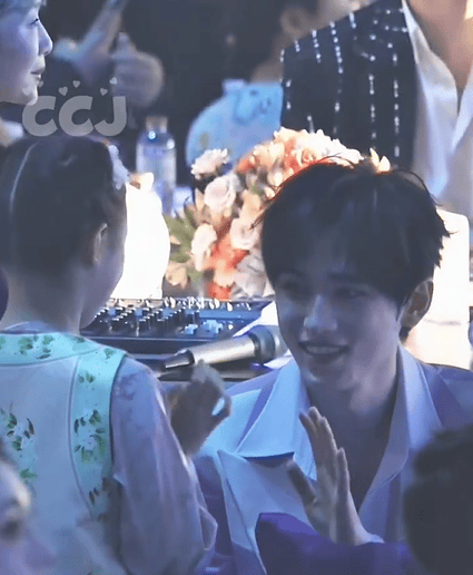搜狐娱乐讯 28日,在“湾区升明月”晚会现场,小酒窝主动请求佟丽娅带她与时代少年团成员宋亚轩见面。随后,小酒窝跑到宋亚轩面前,两人进行了握手互动。